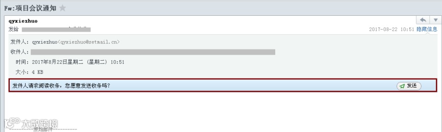 發(fā)件人收到回執(zhí)示例: