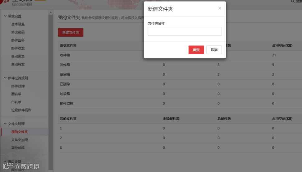 支持創(chuàng)建最多300個自定義文件夾,用于郵件分類管理,可建6級子文件夾。