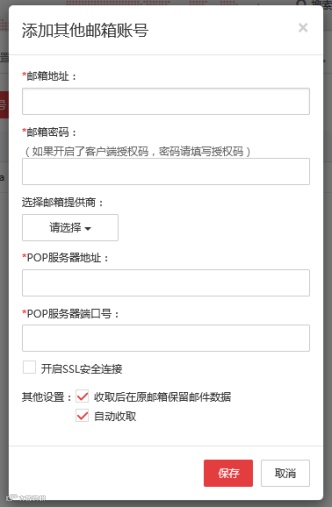 支持通過POP協(xié)議統(tǒng)一收取其他郵箱郵件。建議勾選“收取后保留原郵件”及“自動收取”。系統(tǒng)每10分鐘收取一次,每次100封,大量郵件建議等待1-2天。