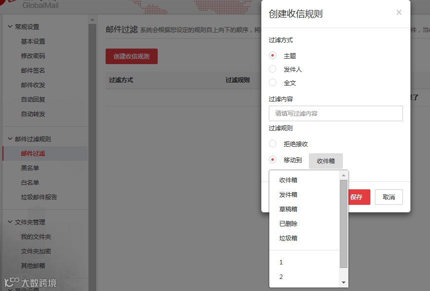 可設(shè)置規(guī)則,按主題、發(fā)件人或全文內(nèi)容將郵件自動分類或拒收。