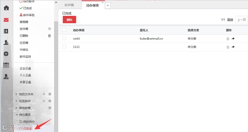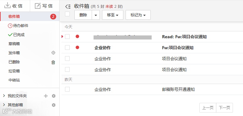 處理完成后標(biāo)記“已完成”,郵件將移至“已完成”文件夾。