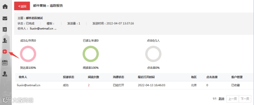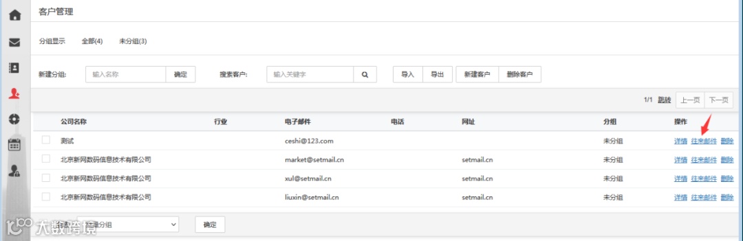 點擊“往來郵件詳情”可追溯與客戶的全部郵件溝通記錄。