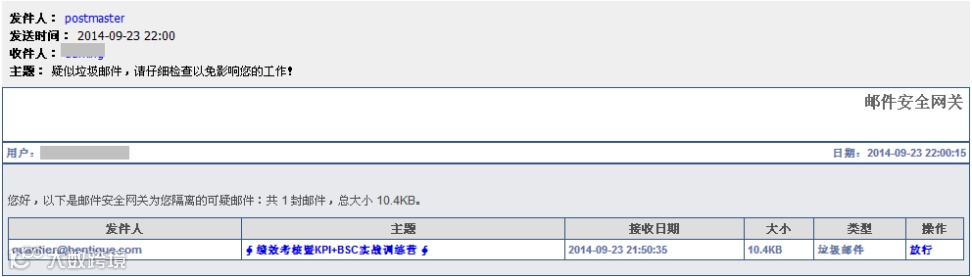 開啟“垃圾郵件摘要報告”后,疑似垃圾郵件將以摘要形式每日推送,可點擊“放行”接收重要郵件。過濾郵件保留7天,請及時處理。