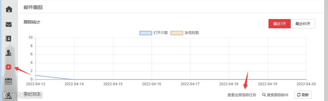 寫信時勾選【開啟郵件追蹤】,發(fā)送后通過左側(cè)導(dǎo)航欄【郵件跟蹤】查看狀態(tài),包括投遞情況、閱讀次數(shù)、打開時間與地區(qū)。追蹤記錄保留近45天。