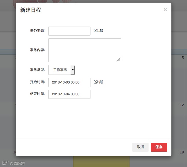點擊日歷日期,填寫主題、內(nèi)容及開始時間即可創(chuàng)建日程。