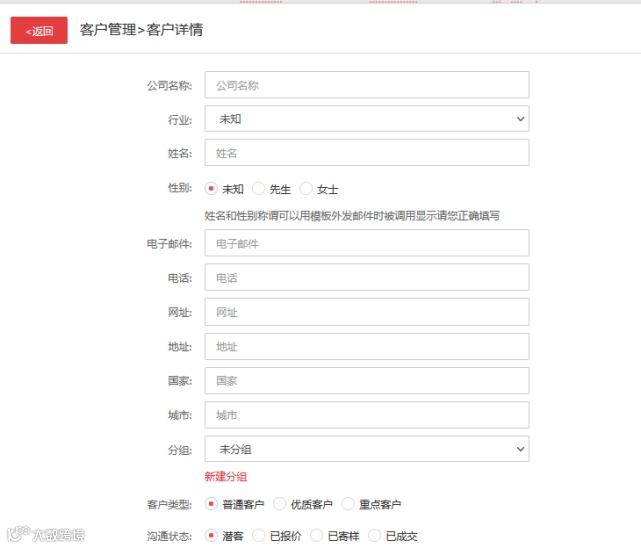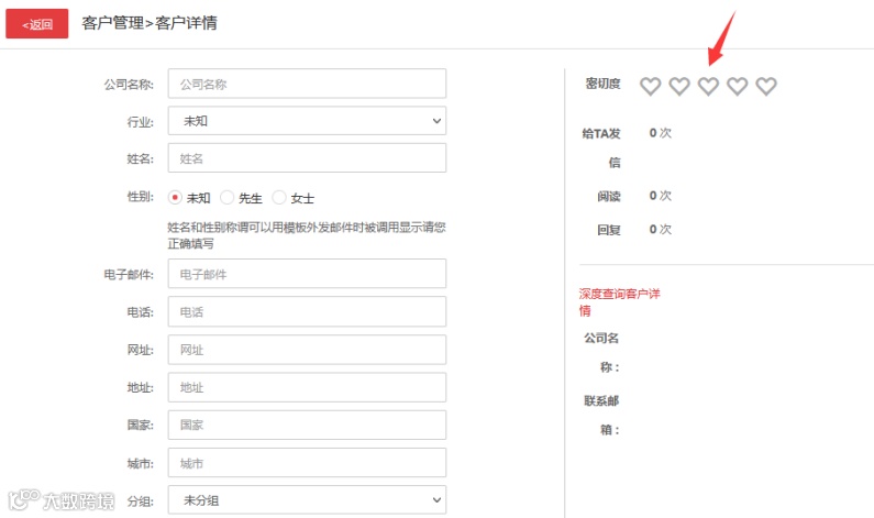 可查看客戶詳細(xì)信息與密切度,系統(tǒng)智能判斷,也支持手動完善客戶畫像。