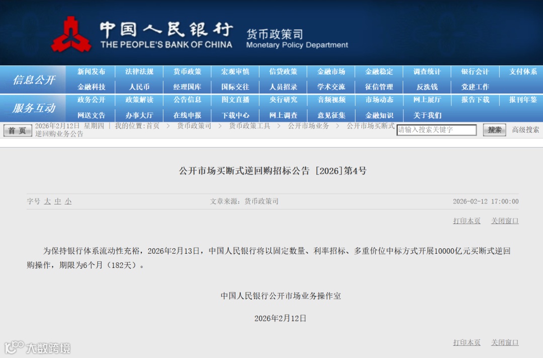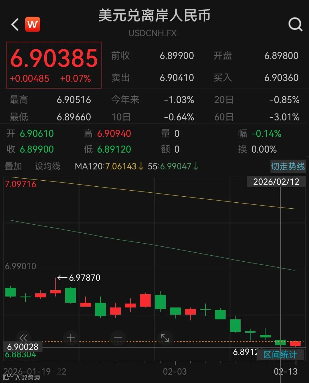 2026年2月12日,在岸人民幣收報(bào)6.9016,離岸人民幣盤中升破6.8990,雙雙創(chuàng)下2023年5月以來、時(shí)隔33個(gè)月的新高。同日,央行公告開展10000億元買斷式逆回購操作。匯率突破關(guān)鍵關(guān)口與大規(guī)模流動性投放同步發(fā)生,引發(fā)市場廣泛關(guān)注。