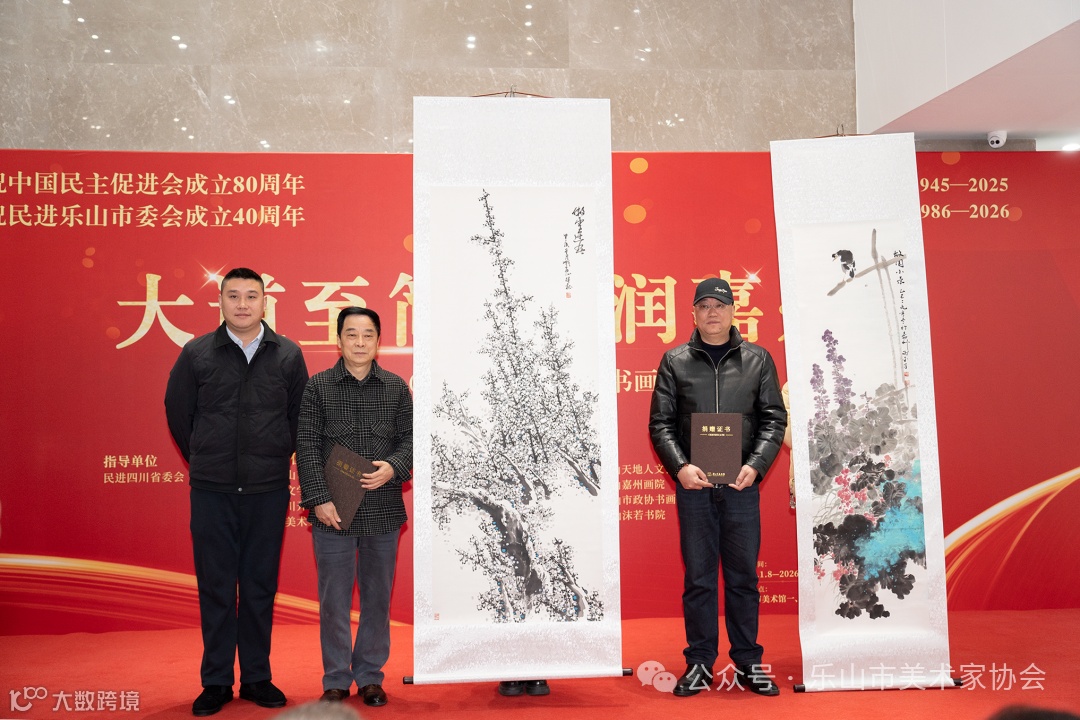 1月8日,由民進(jìn)樂山市委會、樂山市文學(xué)藝術(shù)界聯(lián)合會、民進(jìn)四川開明畫院、樂山市美術(shù)家協(xié)會主辦,民進(jìn)樂山大佛畫院承辦的慶祝中國民主促進(jìn)會成立80周年、民進(jìn)樂山市委會成立40周年——“大道至簡?藝潤嘉州”書畫作品展正式開幕。民進(jìn)四川省委會專職副主委向東,樂山市人民政府副市長、民進(jìn)樂山市委會主委毛劍,中共樂山市委統(tǒng)戰(zhàn)部常務(wù)副部長吉春林,民進(jìn)樂山大佛畫院執(zhí)行院長、民進(jìn)樂山市委會原副主委李開能出席開幕式并致辭。