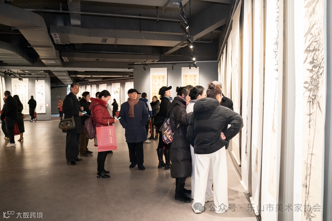 此次畫展為期11天,匯集樂山大佛畫院書畫家及省內(nèi)外名家作品110余幅,既禮贊祖國山河、描摹嘉州風(fēng)光,也詮釋民進(jìn)傳統(tǒng)、歌頌美好生活