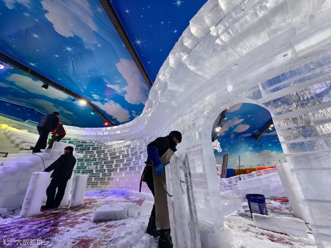 冰雪熱度蔓延至城市公園。東湖公園西門廣場,“冰雕賀歲·馬躍新春”冰雕藝術(shù)展暨年貨展銷活動已啟動。1000平方米的專業(yè)恒溫冷庫內(nèi),溫度控制在-5℃至-8℃,冰雕團(tuán)隊創(chuàng)作的冰雕作品陳列其間,主題涵蓋黃河古象、香包剪紙等慶陽歷史文化遺產(chǎn),融入生肖馬與民俗故事。冰滑梯、冰迷宮等互動項目同步開放,不少家庭帶著孩子參與體驗。