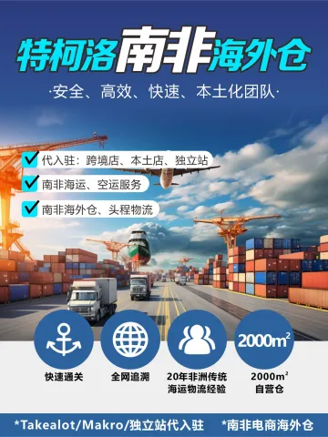 深圳特柯洛海外倉信息科技有限公司是深耕南非市場的跨境電商綜合服務商。我們以本土化倉儲物流為基礎,數(shù)字化運營能力為核心,為中國企業(yè)提供從平臺入駐到長效增長的一站式解決方案,助力品牌高效開拓南非及非洲藍海市場。負責Takealot、makro、temu、獨立站南非站代入駐;南非海外倉服務;物流空運海運等