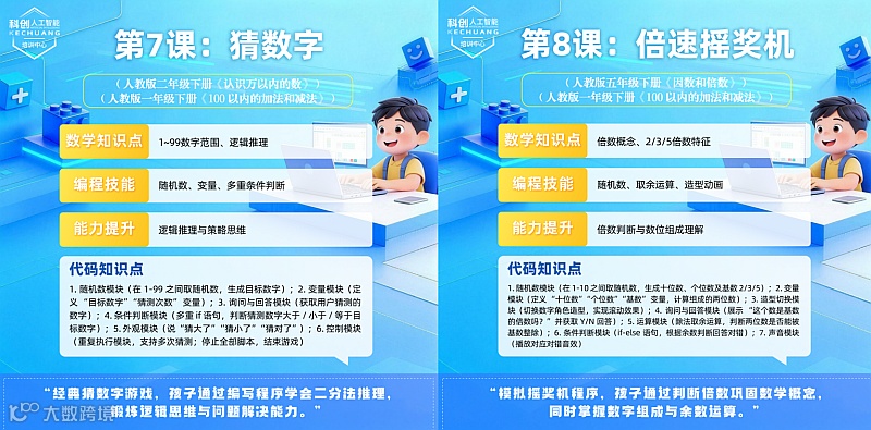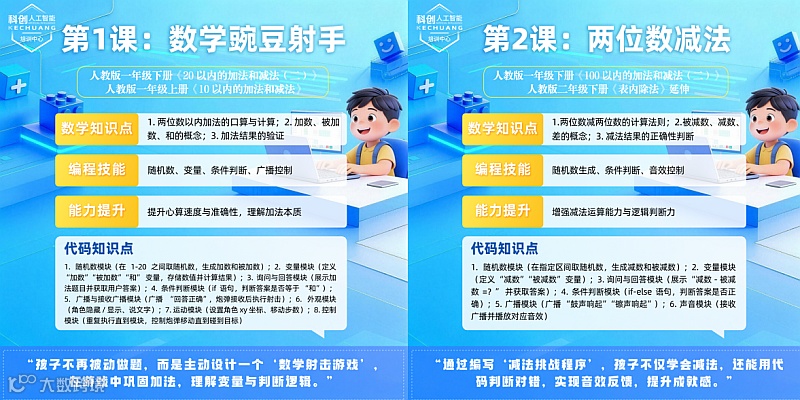 本次Scratch寒假課程以“編程+數(shù)學(xué)”為核心,讓孩子在創(chuàng)作游戲中鞏固知識(shí)、提升思維。通過設(shè)計(jì)“數(shù)學(xué)豌豆射手”“猜數(shù)字”“倍速搖獎(jiǎng)機(jī)”等互動(dòng)程序,孩子將學(xué)習(xí)變量、條件判斷、循環(huán)控制等編程技能,同步訓(xùn)練加減法、奇偶判斷、幾何與邏輯推理等數(shù)學(xué)能力。課程注重引導(dǎo)孩子從“被動(dòng)做題”轉(zhuǎn)向“主動(dòng)創(chuàng)造”,在趣味項(xiàng)目中鍛煉計(jì)算思維、問題解決與創(chuàng)新能力,真正實(shí)現(xiàn)“玩中學(xué),編中思”。