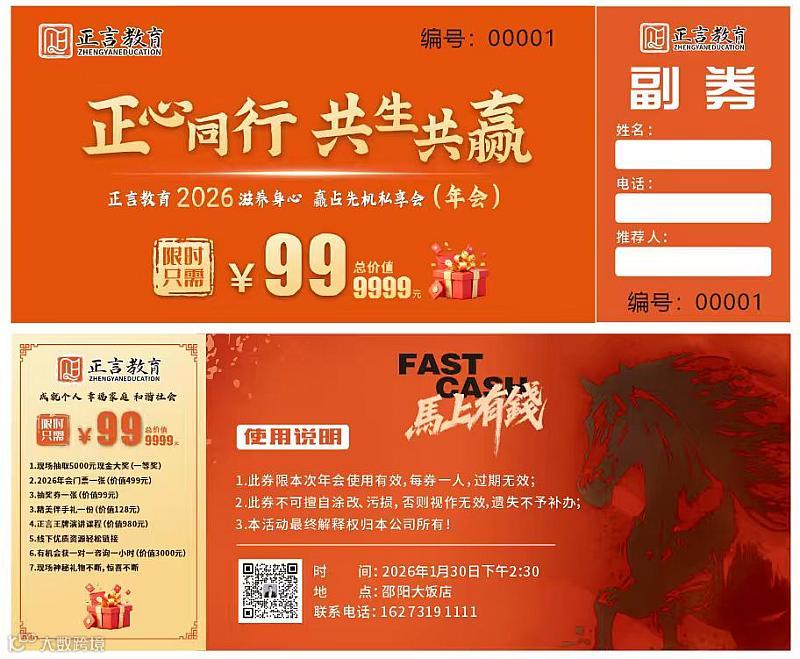 1.門票僅限本次年會(huì)使用,每券一人,過期無效;