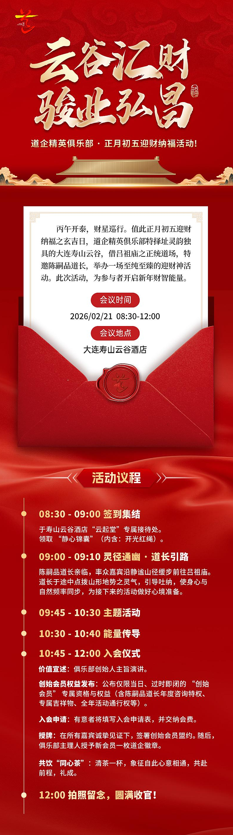 云谷匯財●駿業(yè)弘昌——道企精英俱樂部正月初五迎財納福活動